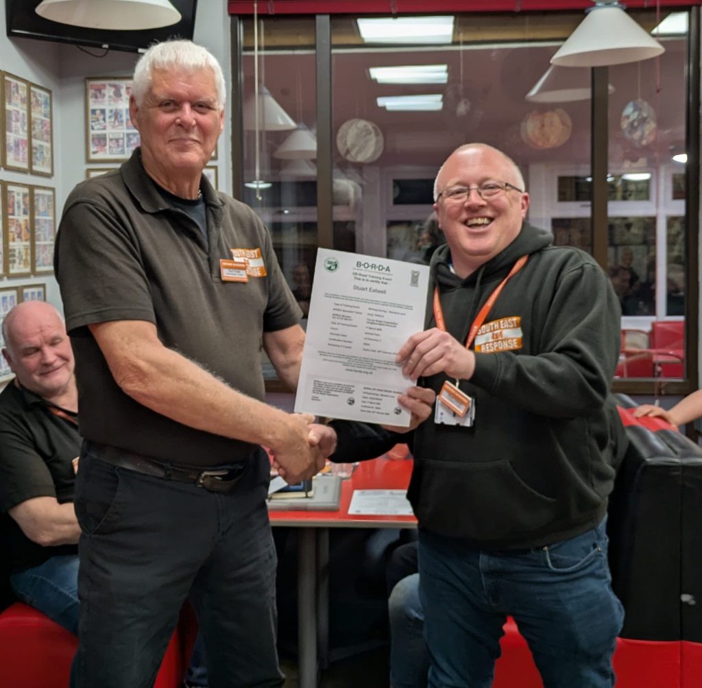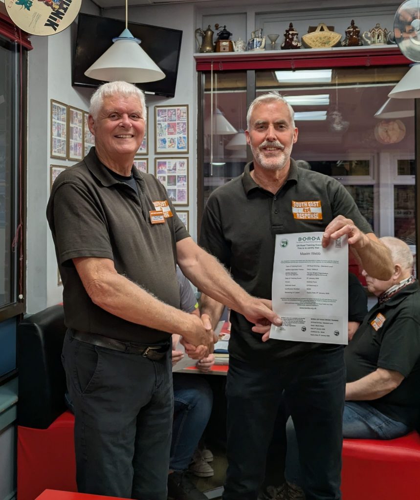 Recent success on the British Off Road Driving Association course saw 4 certificates awarded to the first few to achieve the award. Beginning with classroom learning about their own vehicle capabilities and limitations, before a session out on the off road course. Our thanks to our Vice Chairman for running the course and to The Wright Event, one of our main sponsors, for the use of their facilities.