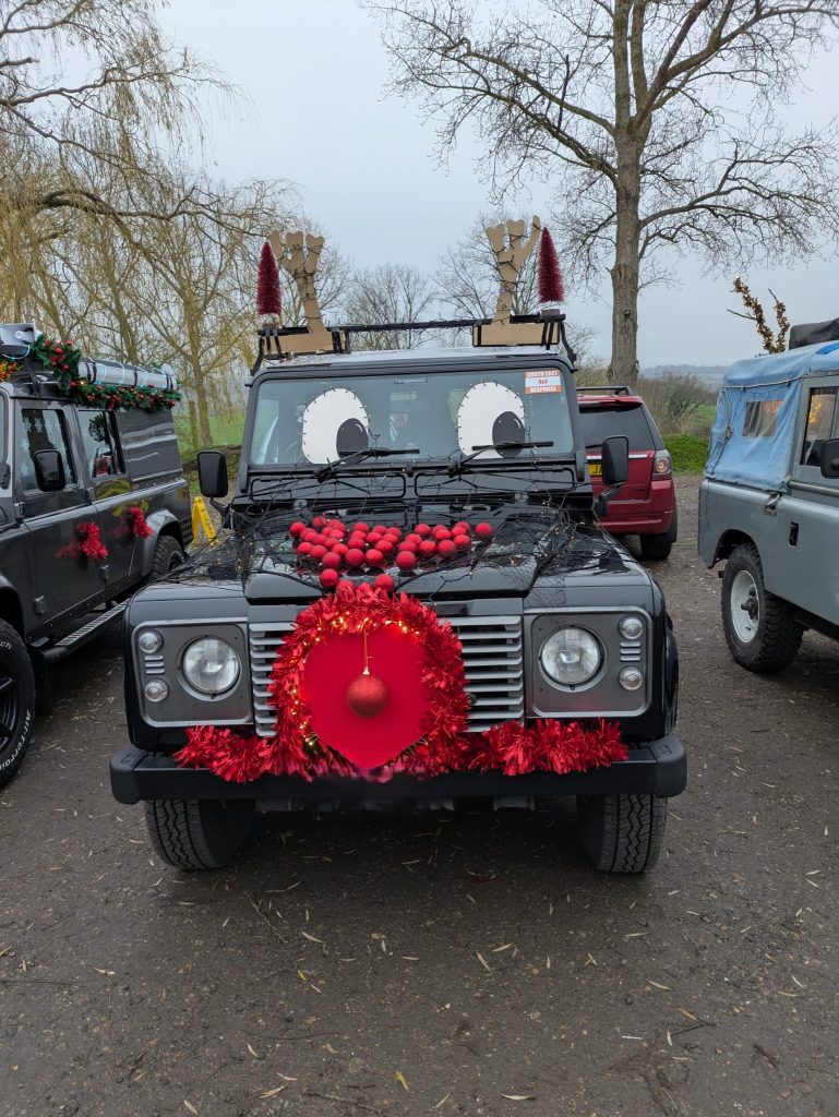 Thirteen members from South East 4x4 Response supported the Christmas Land Rover Meet at Monkshill run by Pegasus Garage, to raise money for The Salvation Army and Kent Wildlife Trust charities. There were prizes for the best dressed Land Rover along with a further prize for the best dressed South East 4x4 Land Rover. One of our trucks was runner up in the first competition owned by Alan, our Treasurer. Cliff won our competition with his truck which sported a seat for Santa in the rear of the pickup. A lovely fun festive afternoon complete with mulled wine, tea and coffee. Some 30-40 Land Rovers joined the fun.
