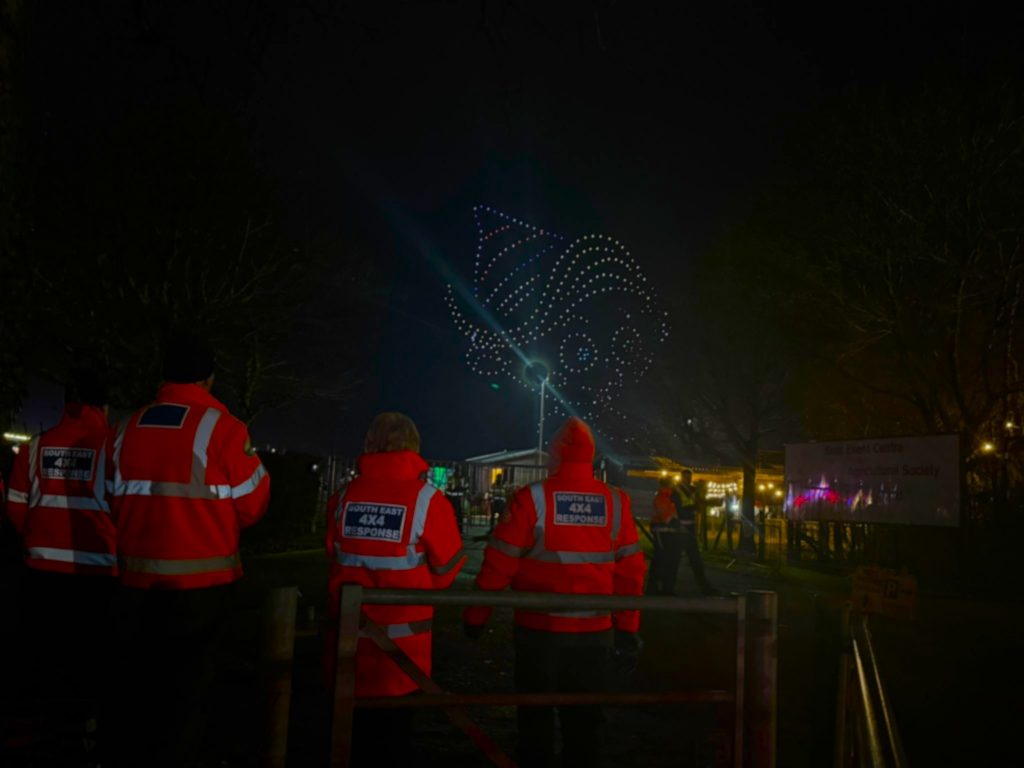 The Rudolf the Red-Nosed Reindeer Drone Light Show at Detling saw 12 of our responders on stand-by near the car parks to assist vehicle drivers should there be problems with soft ground on exit following the heavy rain earlier in the week. Fortunately the ground held firm; only one vehicle needed an assisting push where the vehicle had become trapped in boggy ground. A successful evening for Lumina Drones which was enjoyed by all.